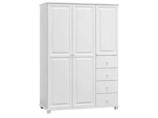 Szafa 3Dnr4 S133 dzięki wykorzystaniu w procesie produkcyjnym materiałów z drewna sosnowego, posiada bardzo wytrzymałą i stabilną konstrukcję. Układ wnętrza szafy, wieszaka, dwóch półek i czterech szuflad, pozwala utrzymać porządek podczas przechowywania przedmiotów. Tradycyjne wykończenie sprawia, że szafa idealnie współgra zarówno z klasycznym jak i nowoczesnym wystrojem. Zastosowanie naturalnego surowca pomogło nam połączyć ze sobą elegancję z funkcjonalnością. Mebel wykonany jest poprzez wykorzystanie najlepszego gatunku drewna sosnowego i potrójne malowanie lakierami ekologicznymi.
