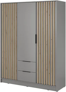 Szafa Stilo w kolorze szarym trzydrzwiowa z szufladami i lamelami na froncie