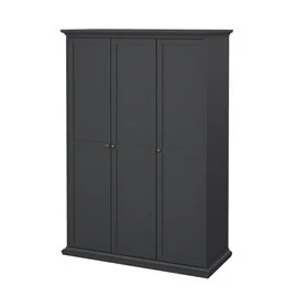 Romantyczna szafa trzydrzwiowa Paris, 139 x 61 x 201 cm, szary mat Szafa Paris to kwintesencja ponadczasowego designu i funkcjonalności, która doskonale wpis...
