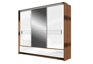 Szafa trzydrzwiowa z lustrem i szufladami TILBURG śliwa + biały połysk