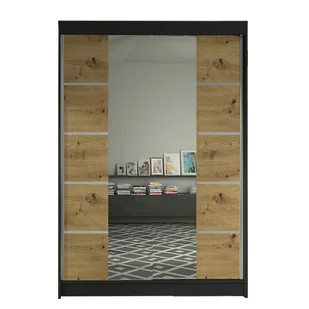 Szafa z drzwiami przesuwnymi Lino V, Czarny / Dąb Artisan