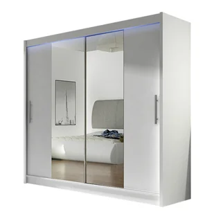 Szafa z drzwiami przesuwnymi London II z oświetleniem RGB, Biały / Lustro