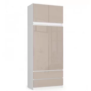 10SZAFA Z NADSTAWKĄ S 90cm 2 DRZWI 2 SZUFLADY Wykonana z płyty laminowanej 16mm odpornej na ścieranie. Krawędzie oklejone obrzeżem ABS Kolor mebla : biały Kolor frontu: Cappuccino PołyskWymiary: Szerokość - 90cmWysokość - 234cmGłębokość - 51cm