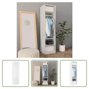 Szafa jest łatwa w montażu. Kolor: białyMateriał: Materiał drewnopochodnyWymiary: 50 x 50 x 200 cm (szer. x gł. x wys.)3 małe przegródki1 duża komora z drążkiem na wieszakiUwaga: Śruby i kołki rozporowe do montażu na ścianie nie są dołączone.