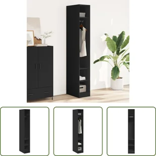 Szafa czarna 30x50x200 cm materiał drewnopochodnyUporządkuj swoją garderobę i z łatwością wybierz strój z tej szafy!Trwały i solidny materiał: Drewno konstrukcyjne to materiał wyjątkowej jakości o gładkiej powierzchni, który charakteryzuje się wytrzymałością, stabilnością i odpornością na wilgoć. Mnóstwo miejsca do przechowywania: Szafa oferuje mnóstwo miejsca do uporządkowania ubrań i toreb. Przegródki są idealne na pudełka i złożone ubrania, a dłuższe stroje można powiesić na drążku na ubrania.