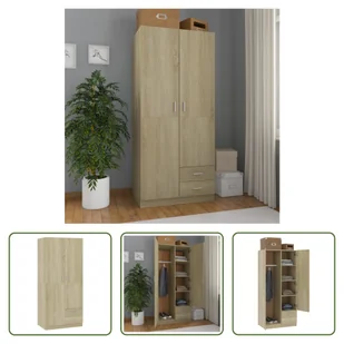 Szafa dąb sonoma 80x52x180 cm materiał drewnopochodnyUbrania i akcesoria będą łatwo dostępne w tej kompaktowej szafie. Oferuje ona doskonałe rozwiązanie do przechowywania i dodaje szyku Twojemu domowi. Szafa wykonana jest z wysokiej jakości drewna, które zapewnia solidność, trwałość i długą żywotność. Posiada 2 szuflady, dużą komorę z drążkiem na wieszaki i oferuje mnóstwo miejsca zarówno na dłuższe kurtki, jak i inne ubrania lub akcesoria, takie jak swetry, dżinsy, czapki, torebki itp. Produkt jest łatwy w czyszczeniu.