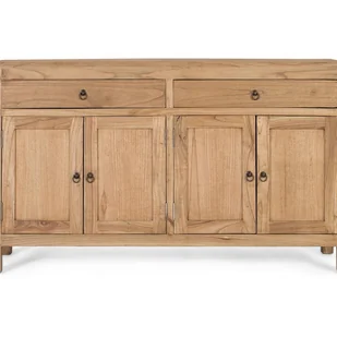 Komoda wykonana z litego drewna mindi, wykończona w naturalnym kolorze, który podkreśla usłojenie i ciepłe tony tego drewna. komoda posiada dwie duże szuflady u góry i czworo drzwiczek z drewnianymi uchwytami u dołu, kryjących pojemne przegródki zapewniające dodatkową przestrzeń do przechowywania. mebel sprawdzi się w jadalniach, salonach, wejściach, a nawet jako pomocnicza komoda w biurach lub pracowniach. wymiary przodu - 11 x 63 cm, wymiary wewnętrzne szuflad - 9 x 60 x 28 cm, wymiary półki - 67 x 35 cm, wysokość półki - 21 cm, wieczko - 2 cm, wysokość nóg - 11 cm