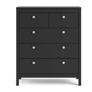 Komoda Madrid z 5 szufladami w kolorze czarny mat to komoda w kolorze czarnym, która wniesie do Twojego domu zarówno styl, jak i funkcjonalność. Komoda Madrid z 5 szufladami czarny mat. Produkt ten został wykonany z dużą dbałością o szczegóły, zapewniając zarówno estetykę, jak i wysoką trwałość. Został zaprojektowany z myślą zarówno o funkcjonalności, jak i stylu, dzięki czemu jest idealnym wyborem do każdego pomieszczenia w domu. Zastosowane materiały są wysokiej jakości, zapewniając długą żywotność produktu i gwarantując, że wytrzyma on codzienne użytkowanie.