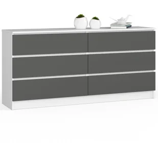 Fabryka Mebli Akord Komoda do salonu K 160 cm 6 szuflad - biała-grafit szary