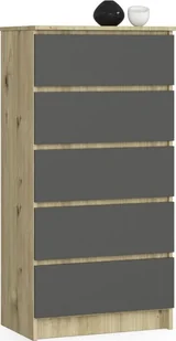 Fabryka Mebli Akord Komoda do salonu K 60 cm 5 szuflad - dąb artisan-grafit szary