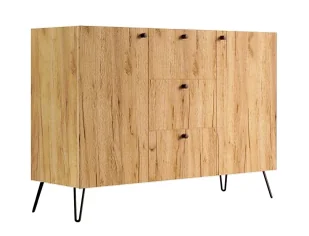 Kolor: dąb craft. Kolor uchwytów do wyboru: bukowy, czarny, dębowy. Poinformuj nas o wybranym modelu w polu "Komentarz do zamówienia" lub drogą mailową. W przypadku braku informacji wysyłamy uchyty w kolorze bukowym. Kliknij w link i sprawdź także inne komody w stylu indrustrialnym z naszej oferty.