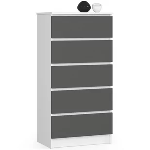 16 mm Jakość panelu: Certificat E1, atest higieniczny * Kolor: Korpus : Biały Front : Grafit Szary Ilość szuflad: 5 Szerokość szuflady:
