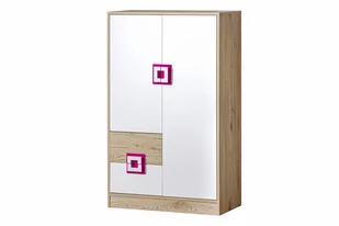 CAMBI collection - Komoda Kolekcja: CAMBI || Wymiary: 80x130x40 cm || Materiał: płyta wiórowa || Kolor: biały/jasny dąb/różowy || Styl: