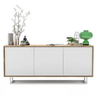 APOLLO-KOM-3D-WOT-WHI_FRAME-WHI Komoda do salonu, loft, apollo, 168x35x72 cm. Nowoczesna komoda do sypialni, salonu stojąca w stylu loft. Posiada trzy zamykane komory z podziałem na dwa poziomy. Szafka została wykonana z płyty laminowanej odpornej na ścieranie. Krawędzie szafki oklejono obrzeżem ABS zapewniającym wysoką ochronę przed uszkodzeniami.