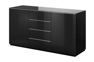 Komoda dwudrzwiowa z czterema szufladami Helio 26 - czarny / czarne szkło, Szerokość: 160, Wysokość: 80, Głębokość: 48, Montaż: Samodzielny.