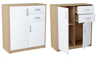 Charakterystyka produktu Kolorystyka: Dąb Sonoma - Biały Wysokość: 85 cm Szerokość: 74 cm Głębokość: 35 cm Materiał - płyta laminowana firmy Kronospan Grubość płyty - 16mm Obrzeże grubości 0,5 mm Obrzeża - standotron Liczba szuflad - 2 Liczba drzwi - 2 Prowadnice - metalowe rolkowe z blokadą wysuwu Uchwyty- wysokiej jakości tworzywo polimerowe Półka - z możliwością regulacji Możliwość dokupienia dodatkowych półek oraz innych uchwytów pasujących do naszych mebli z rozstawem 96mm Zastosowanie - biuro, sypialnia, salon, pokój dziecięcy, pokój młodzieżowy, korytarz, garderoba, jadalnia, przedpokój Przednia krawędź blatu wykonana w technologii soft, to znaczy, że jest zaokrąglona co powoduje że cała komoda wygląda bardzo ładnie, takie wykonanie możliwe tylko fabrykach mebli posiadających zaawansowane technologicznie maszyny.