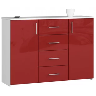 KOMODA K 140 cm 2 DRZWI 4 SZUFLADY AKRYL CZERWONY WYSOKI POŁYSK