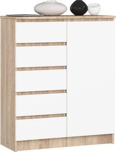 Komoda AKORD K80 Dąb Sonoma 80 cm 1 drzwi 5 szuflad kolor Biały mat 3 półki 80x35x97 cm