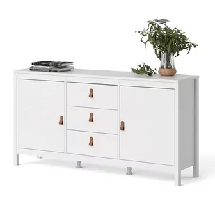Seria: Dane szczegółowe Opis produktu Kod produktu 24254 Materiał płyta meblowa Kolor biały mat Wymiary szerokość: 151 cm wysokość: 80 cm głębokość: 38 cm Stan produktu do samodzielnego montażu Cechy charakterystyczne : ponadczasowe wzornictwo minimalistyczna forma mebla praktyczna i funkcjonalna komoda do salonu i pokoju dziennego mebel dostarczany jest z dwoma rodzajami uchwytów - szarymi gałkami lub brązowymi skórzanymi uchwytami solidne i trwałe wykonanie meble posiadają certyfikaty uwzględniające środowisko i ludzi posiadające CERTIFIED CARE oraz przeszły testy wytrzymałościowe Wyposażenie :