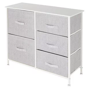 ok. 37 cm x 30 x 19,5/29,5 cm Kolor: biały Liczba szuflad: 5 Masa: ok. 7,1 kg Właściwości: 5 składanych szuflad na tekstylia Stabilna konstrukcja stalowa z panelem górnym z laminowanej płyty MDF Prowadnice podłogowe z regulacją wysokości Oszczędność miejsca i duża ilość miejsca do przechowywania Szybki i łatwy montaż Opis: Wielofunkcyjna szafa tekstylna z 5 szufladami marki ML-Design ma solidną stalową konstrukcję z drewnopodobnym panelem górnym z płyty MDF i doskonale nadaje się do salonu, sypialni, pokoju dziecięcego lub przedpokoju.
