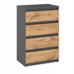 STIV Möbel | komoda | drewniana komoda | kredens do salonu, kredens do sypialni | 60 CM | 4 szuflady | szary - dąb Wotan⚙️Spezifikationtechniczne: System mebli: fronty bez uchwytówTyp mebla: stojącySzerokość: 60 cmWysokość: