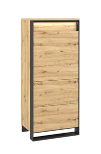 Mebel - sprzęt użytkowy przeznaczony do wyposażenia wnętrz mieszkalnych i publicznych, czasem posiadający walory dekoracyjne. Klasyka i nuda? Nie z nami! Kolekcja mebli Quant to cudne, olśniewające, urzekające, rewelacyjne, niepospolite meble, które upiększą każdą przestrzeń w Twoim domu! Poznaj loftową propozycję 8 mebli, które pozwolą Ci "zaszaleć" i stworzyć przytulne i wyjątkowe wnętrze. Wysoka komoda QA-07 to jeden z elementów kolekcji mebli Quant o unikalnym designie utrzymanym w industrialnym klimacie. Czarna podpora świetnie współgra z płytą w kolorze dąb artisan imitującą naturalną barwę. Trójwymiarowy charakter frontów został podkreślony poprzez ledowe oświetlenie.