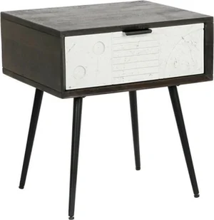 Stolik nocny czarny z szufladą szafka na metalowych nogach Rustykalny