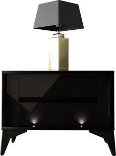 MEGSTYL SZAFKA NOCNA 61CM Z 2 SZUFLADAMI NA CZARNYCH NÓŻKACH - EVEL 4 Czarny mat - Czarny połysk