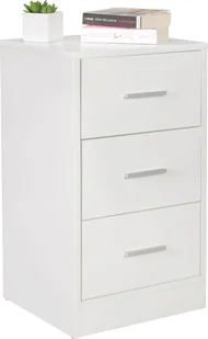 Wykończenie BiałyCechy 3 szufladyZakres dostawy 1 szafka nocna bez dekoracji Design Nowoczesna konsola nocna, prosty design Konsola z trzema pojemnymi szufladami Szafka nocna posiada cztery stabilne nóżki Wymiary Szerokość: 37,5 cm Wysokość: 68 cm Głębokość: 35 cm Wymiary wewnętrzne szuflady WxHxD: 28 x 10 x 28,5 cm Kolor Kompletna szafka nocna jest fornirowana na biało Cechy szczególne Pojemne szuflady do przechowywania przyborów Duża półka na lampkę nocną i inne przedmioty Łatwa do czyszczenia zwilżoną bawełnianą ściereczką Idealna do łóżek ze sprężynami skrzyniowymi ze względu na swoją wysokość Materiał Fornirowana płyta prasowana, pokryta żywicą melaminową Nóżki: