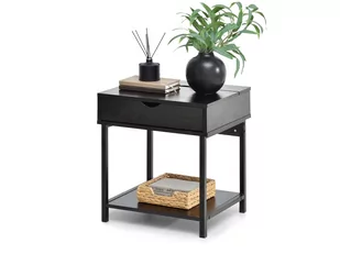 cechy blat prostokątny, z półką, z szufladą, wbudowane gniazda elektryczne, port USB przeznaczenie sypialnia, salon Kolorystyka kolor podstawy: czarny kolor półek: czarne drewno kolor blatu: czarne drewno styl wnętrzarski nowoczesny, industrialny Wymiary i waga długość: 40 cm szerokość:
