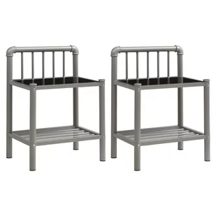 Ten zestaw 2 szafek nocnych o prostym, ale stylowym designie będzie doskonałym dodatkiem do wystroju Twojego domu. Zawierająca metalową ramę szafka boczna charakteryzuje się dużą stabilnością i solidnością. Szklana półka jest łatwa do czyszczenia i zapewnia dużo miejsca na przechowywanie i uporządkowanie przedmiotów w zasięgu ręki. Mebel może również posłużyć jako stolik na telefon, stolik boczny, stolik nocny itp. Kolor: szaro-czarny Materiał: