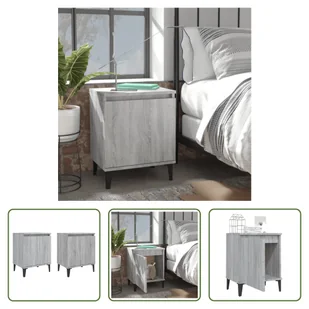 The Living Store Szafki nocne z metalowymi nogami - szary dąb sonoma - 40x30x50 cm - Szafka Nocna