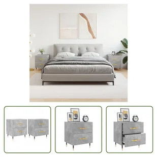 Stoliki nocne 2 szt. Szary beton 40x35x47,5 cm materiał drewnopochodnyDodaj odrobinę nowoczesnego uroku do swojego wnętrza dzięki tym szafkom nocnym!Trwały materiał: Drewno inżynieryjne to wyjątkowej jakości materiał o gładkiej powierzchni, który charakteryzuje się wytrzymałością, stabilnością i odpornością na wilgoć. Przestronna przestrzeń do przechowywania: Stolik nocny ma szuflady, które zapewniają dużo miejsca do przechowywania rzeczy w zasięgu ręki.