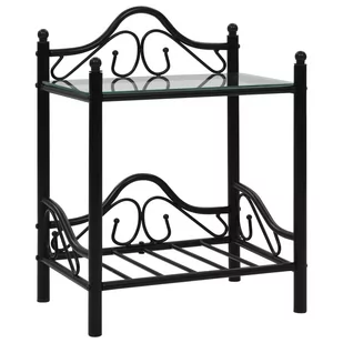 Stolik ma mocną, stalową ramę oraz panel z hartowanego szkła, dzięki któremu jest stabilny i wytrzymały. Stolik ma 2 półki, na których możesz umieścić różne małe przedmioty. Zawijane, stalowe detale nadają mu elegancki styl. Mebel jest prosty w montażu.