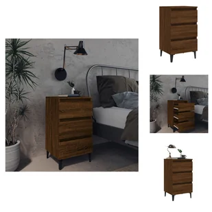 Ulepsz swoje wnętrze dzięki tej stylowej i eleganckiej szafce nocnej w stylu industrialnym. Ta szafka nocna z czterema metalowymi nogami jest stabilna i wytrzymała. Ponadto szafka nocna jest wyposażona w trzy szuflady, które oferują dużo miejsca do przechowywania, dzięki czemu rzeczy są uporządkowane i łatwo dostępne. Szafka nocna jest również łatwa do czyszczenia wilgotną ściereczką. Kolor: brązowy dąbMateriał: