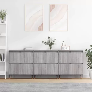 Funkcja dekoracyjna: na blacie tej szafki możesz postawić swoje ulubione zdjęcia, ozdoby lub kwiaty, aby wzbogacić wystrój swojego wnętrza. Ostrzeżenie: Aby zapobiec przewróceniu się mebla, musi on zostać przymocowany do ściany za pomocą dołączonego elementu. Kolor: szary dąb sonoma Materiał: