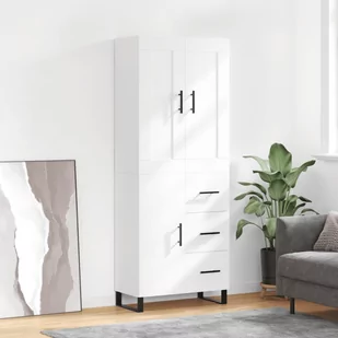 Szukasz stylowej, wysokiej szafki? Ten model wprowadzi niepowtarzalny urok do Twojego wnętrza! Trwały materiał: materiał drewnopochodny charakteryzuje się wyjątkową jakością i gładką powierzchnią, a także wytrzymałością, stabilnością i odpornością na wilgoć. Dużo miejsca do przechowywania: szafka zapewnia sporą przestrzeń do przechowywania różnych rzeczy codziennego użytku w sposób uporządkowany i w zasięgu ręki. Praktyczne drzwiczki: