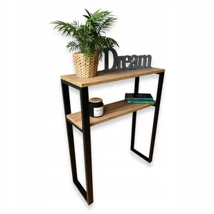 KONSOLA, TOALETKA STYL INDUSTRIALNY, LOFT z półką na 1/3 wysokośći od góry Produkowane przez nas meble inspirowane są stylem loftowym, industrialnym. Minimalistyczne, a zarazem niezwykle eleganckie doskonale wypełnią przestrzeń w Państwa domach. Największym atutem naszych mebli jest jakość, która w porównaniu z nowoczesnym designem tworzy piękny i wspaniały produkt. Zalety konsolki: nowoczesny kształt funkcjonalna praktyczna elegancka dodatkowa półka można podstawić krzesło, spełniała będzie funkcję nowoczesnej toaletki bez problemu wjedzie pod nią robot sprzątający Blat wykonany z wysokiej jakości płyty laminowanej firmy KRONOSPAN - odpornej na ścieranie, zarysowanie, temperaturę, czy wilgoć.