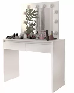 zestaw do samodzielnego montażu kolor biały materiał wykonania płyta laminowana + pcv 10 bardzo mocnych lampek LED z zasilaniem USB - naklejane na lustro - kable z przodu nadstawki biegną Dane techniczne: wysokość biurka - 80 cm +nadstawka szerokość - 90 cm głębokość - 50 cm OPIS PRODUKTU Modna i praktyczna toaletka marki Sachino w kolorze białym uatrakcyjni Twoje wnętrze. Jej klasyczność oraz nowoczesność tworzą stylowy model, który idealnie wkomponuje się do każdego rodzaju wnętrz. Cechy produktu: kolor biały materiał wykonania: