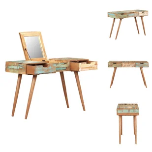 Ta drewniana toaletka z lustrem natychmiast wzbogaci Twoją sypialnię. Ta toaletka wykonana jest z litego drewna z odzysku, które pochodzi z belek, podłóg i belek nośnych ze starych, rozebranych budynków i może składać się z różnych rodzajów drewna, takich jak sosna, drewno tekowe, buk, dąb, cedr, drewno mango, akacja itp. Oznacza to, że odzyskane drewno zachowuje właściwości tych różnych rodzajów drewna. Drewno z odzysku jest już postarzone, zwietrzałe i wysuszone, dzięki czemu nie kurczy się ani nie wygina. Ta toaletka jest w całości wykonana ręcznie, a piękne słoje drewna sprawiają, że każdy mebel jest wyjątkowy.
