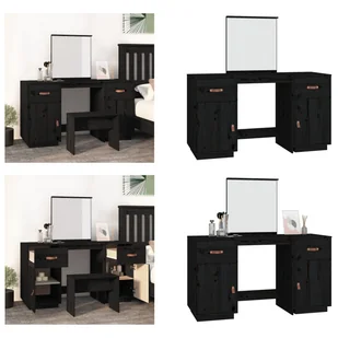 Toaletka z lustrem czarna z litego drewna sosnowegoTa klasyczna drewniana toaletka z lustrem będzie doskonałym dodatkiem do Twojej sypialni. Tutaj możesz trzymać swoje kosmetyki w zasięgu ręki!Lite drewno sosnowe: Lite drewno sosnowe to piękny, naturalny materiał. Drewno sosnowe ma proste usłojenie, a sęki nadają mu charakterystyczny, rustykalny wygląd. Dużo miejsca do przechowywania: