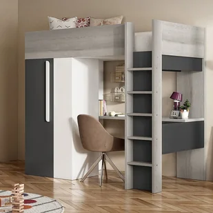 Nowoczesne i niezwykle pomysłowe łóżko NICOLAS zaskoczy cię ilością miejsca, jaką dzięki niemu możesz zyskać. Poza wbudowanym biurkiem narożnym, łóżko piętrowe posiada dużych rozmiarów szafę składającą się z bieliźniarki i 4 półek. To niezwykle praktyczne łóżko jest idealne do pokoju nastolatka!