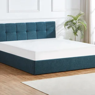 Łóżko ze skrzynią 180 x 200 cm - Tkanina z bukli - Morski niebieski + Materac - MAZIRI