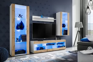 Meblościanka Biały/Dąb Wotan LED Meble RTV - Zestaw Mebli
