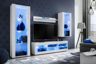 Zestaw dostępny w różnych wariantach kolorystycznych z możliwością zakupu w wersji z niebieskim podświetleniem LED oraz LED RGB: KORPUS: BIAŁY CZARNY DĄB WOTAN FRONT: BIAŁY CZARNY DĄB WOTAN LEDY: Wielokolorowe Niebieskie Przedmiotem aukcji jest zestaw mebli do salonu bez świateł LED, widoczny na pierwszym zdjęciu aukcji.
