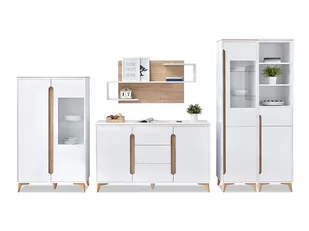 Skandynawski Komplet Mebli Do Salonu Z Witryną Lark 4 Biały-Jesion
