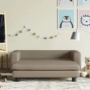 nowoczesna kanapa stworzy przytulną atmosferę oraz będzie przyciągającym wzrok dodatkiem do dziecięcej sypialni. Kolor: cappuccino Materiał: sztuczna skóra (100% poliuretan), lite drewno sosnowe, plastik Materiał wypełnienia: gąbka Wymiary: 100 x 50 x 30 cm (szer. x gł. x wys.) Wymiary siedziska: