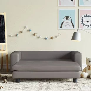 nowoczesna kanapa stworzy przytulną atmosferę oraz będzie przyciągającym wzrok dodatkiem do dziecięcej sypialni. Kolor: szary Materiał: sztuczna skóra (100% poliuretan), lite drewno sosnowe, plastik Materiał wypełnienia: gąbka Wymiary: 100 x 50 x 30 cm (szer. x gł. x wys.) Wymiary siedziska: