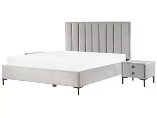 Luksusowe, jasnoszare aksamitne łóżko z dopasowanymi szafkami nocnymi. Praktyczny 3-częściowy zestaw do sypialni, który wypełni pokój stylem. Miękkie aksamitne obicie o przyjemnym dotyku nadaje podwójnemu łóżku czarujący i efektowny wygląd, który dodatkowo podkreślają ozdobne linie na wezgłowiu. Dzięki solidnej ramie z listew, stabilnym metalowym nogom i przestronnemu schowkowi, to aksamitne łóżko jest doskonałym wyborem dla każdego, kto szuka solidnych i funkcjonalnych mebli do sypialni. Dwa stoliki nocne w zestawie mogą być używane do przechowywania wszystkich niezbędnych przyborów, czasopism i książek w zasięgu ręki.