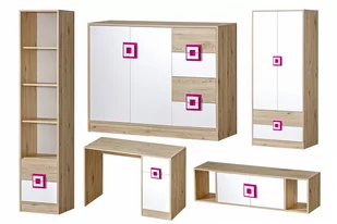 Zestaw mebli młodzieżowych, 5 el. CAMBI biały/jasny dąb/różowy